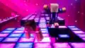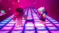 Kai and Zuri then emerge in a frozen landscape, hitting TNT over and over with pickaxes. From there they emerge on a walkway for a fashion show, demonstrating many character creator items. After the video ends, an eighteen second long sequence of the robot stroking the chin of a dragon plays.