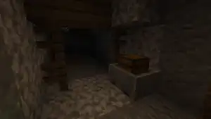 A mineshaft as it appears in Minecraft Experience: Villager Rescue. -