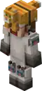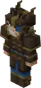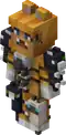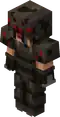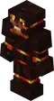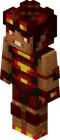 A slim figure, with a helmet of a magma cube, exposed arms, shorts, and a shirt of an open magma cube. | |