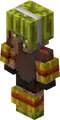 A gruff looking villager wearing a brown t-shirt, a melon on their head, and using hay for pads. |