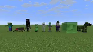 - ↑ Mob (video games) or a single entity in a group when referring to Minecraft.