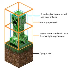- ↑ that is, the block situated one block above the floor block the mob will spawn onto