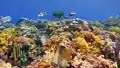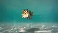Moving onto icebergs, the narrator appears to either change their mind on the tragedy of shipwrecks or make a very distasteful joke, saying that icebergs are "why all those stupid ships sank." They then change the topic to bubble columns, simply remarking "bubbles" before being startled by the appearance of a phantom, which they remark "isn't very aquatic." As they're shown ocean ruins, they concede they "sound somewhat entertaining," and then see a barrage of new features, including coral reefs, cod, kelp, turtle eggs, tridents, buried treasure, salmon, seagrass, underwater ravines, tropical fish, and finally pufferfish. Remarking "what a kook!" to the sight of a pufferfish, the narrator warms up to the prospect of updating the oceans. As the video ends, it is credited as starring "assorted fish," as well as "crafted by many DEVELOPERS, a few PIXEL ARTISTS & inspired by real-life OCEANS."