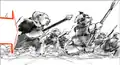 Piglins raising weapons. -