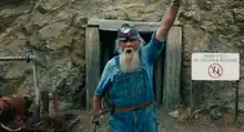 The miner was an elderly human portrayed by Craig Mckinney in A Minecraft Movie. He dons a blue shirt with blue overalls. He also wears a mining helmet, a brown belt, and has a long gray-white beard.