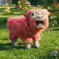 These cubic hooved animals are covered in a dense layer of wool which can come in a variety of different colors, most commonly pink, white, and brown. At approximately 1.1 meters in height at the shoulders, sheep have compact flat faces in comparison to their Earth counterparts. Despite having their eye structure situated at the front of their faces, their eyes cross outwards to the left and right respectively. Interestingly, their dentition does not resemble that of Earth sheep, and instead resembles omnivorous animals such as humans.