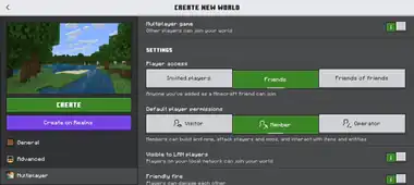 In Bedrock Edition, the game features multiplayer connections using local area network (LAN) and the Xbox network. By using Microsoft accounts, the host can let players join their game by invites or their friend status in the Xbox network. Multiplayer game is enabled by default upon a world creation, which can be changed in "Edit World" → "Multiplayer".