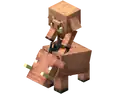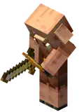 A piglin is a neutral mob found in the Nether. It is hostile to players unless they wear at least one piece of golden armor. It can be given gold ingots to barter for various items. It wields either a golden sword, golden spear[upcoming Mounts of Mayhem], or crossbow, and uses either melee, spear charge, or ranged attacks, respectively.
