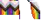 The cape is a pixelated adaptation of Daniel Quasar's Progress Pride Flag design. It features 6 vertical stripes, colored red, orange, yellow, green, blue, and purple from left to right, resembling a rainbow pattern from the traditional rainbow flag. Hovering above are a series of downward-pointed chevrons, colored white, pink, light blue, brown, and black from top to bottom. This pattern is repeated with the elytra, instead being mirrored on both wings.
