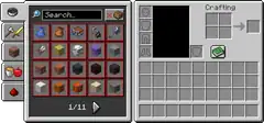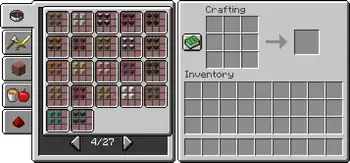 The recipe book can be displayed in inventory, crafting table, furnace, blast furnace and smoker. The player must enter the GUI and press the knowledge book icon; the recipe book then opens to the left.