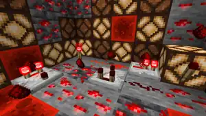 Redstone Dust, a mineral that can transmit redstone power when placed as a block.- Redstone mechanics
