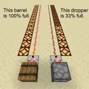 13w02bThe algorithm for measuring containers has been changed again, as a result the amount of items corresponding to each signal level is now different (for example, a comparator reading a hopper with 22 items inside now outputs signal strength 1, instead of signal strength 2).
