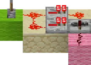 - Variations: The "adjustable" version takes up the same space, but its output pulse can be adjusted from 1 to 3 ticks. The "flat" version can also be adjusted from 1 to 3 ticks.