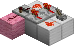 - Variations: The piston and block of redstone can be moved to the side of the dust, rather than on top of the dust, producing a flat 2-wide circuit.