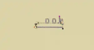 - Similar to the design above, but using a piston-based AND gate which shuts off the output as soon as the input turns off.