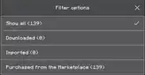 ![]() Show all, Downloaded, Imported, and Purchased from the Marketplace. | |