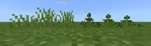 Short grass is a non-solid plant block that may drop wheat seeds when broken. Its color is biome-dependent, and matches the color of grass blocks.