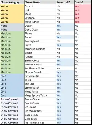 Snow golem biome statistics.