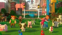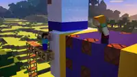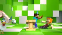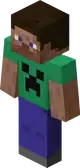 Steve wearing the head of a creeper, from the 1st Birthday skin pack. | |