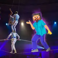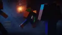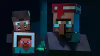 Artwork of Steve and Alex used to promote A Minecraft Movie, parodying the poster for the film Dune: Part Two. -