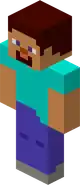 Steve is typically depicted with wide arms, brown skin, short, dark brown hair, a visible nose, violet eyes, and a beard. Apart from the beard, Steve's signature features are a cyan shirt with noticeable cuffs, untucked on the left-hand side. Steve's shoes are gray and their pants are purple.