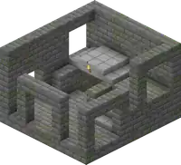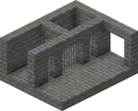 This sub-structure consists of a corridor; it generates with an entrance and an exit on opposite sides, making it a 5 block long corridor. On each side, a side exit has a 50% chance to generate; if it does not, the corresponding side is sealed with a stone bricks wall.