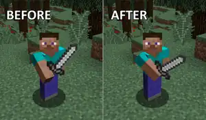 The blocking animation using a sword before and after Java Edition 14w30a (from the Adventure to the Bountiful updates).