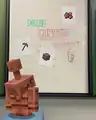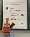 Copper golems looking at instructions for the Copper Community Challenge.
