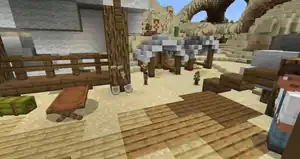 Heading back inside, the player can craft a hanging sign, before Aisling says they have a customer. This is revealed to be Isabella Stone, an ancestor of Professor Stone, who proclaims "you" have a reputation for being the best blacksmith in town. She asks for help, mentioning that she wants a rare armor trim from a "nearby temple" of unknown history. Accepting the quest, the player will be encouraged to prepare for the journey, with several chests containing iron swords, chainmail and iron armor, inside the shop. Outside, the player will find a hot spring, similar to one in Digsite Echo, a large sandstone fountain, several stands selling cake, melons, and pumpkins, and an inaccessible second building. Exiting this area will lead them into a bazaar, Aisling telling them to head for a camel stable.