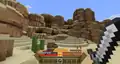 Once the player enters the map itself, the screen will fade to black, as sounds of horses galloping play. From there they will be warped to a desert, inside of a tent with four beds, a crafting table, a lectern with a book, and a sherd on display. The player's first task will be to meet with Professor Stone, who is down below a flight of stairs. Talking to her will inform the player she wants them to craft a brush, giving them the necessary items and triggering a marker at crafting tables, those being behind her or in the tent. After crafting the brush, Stone will congratulate the player, then instruct them to brush suspicious sand "over there." Brushing the sand will excavate an emerald.