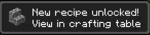| 1.13 | 18w06a | "Unlocked recipe" toasts now show an icon in the top left to specify whether the unlocked recipe is a crafting or smelting recipe. | |||||