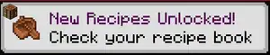 A toast after obtaining a recipe in Java Edition. -