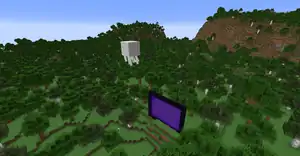 The next step is building a big Nether portal: it must have at least 5×5 interior (7×7 with edges). A maximum size Nether portal is 21×21 interior (23×23 with edges). It is recommended that you choose a relatively flat area for this (again, Nether roof is perfect!). Bottom edge of your portal should be at the same level as the ground, so that the ghast doesn't get stuck on it. If you use the roof method, you have to build a platform around your portal, since you can't build inside bedrock. This platform should be built with fireball-proof material (e.g. cobblestone).