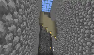 A passageway more than 1 block wide must be extended from wall to wall in a particular fashion. A torch is placed on the block of sand above the previous torch, and sand is placed above that. This process is repeated until the hall is waterproofed.
