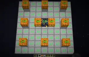 This design was one of the few fully automatic designs for a blaze farm. Because of the fact that it is fully automatic, it requires a lot more redstone than semi-automatic farms, and is therefore more complicated. What happens in this blaze farm is, a player must be in a certain spot, so that the blazes can attack that player. Once the player is attacked, tamed wolves positioned in a certain spot kills the blaze. Due to the update in 1.8, this design no longer works as blaze do not swim upward in lava.