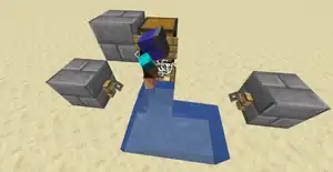 - To guarantee a starting timing that ends with connection, the switch usually contains a redstone component such as a lever, a button, a redstone torch and redstone wire that charges a conductive block, in order to update 2 or 4 water blocks when starting. The screenshot shows one of these dupers with a lever.
