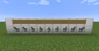 Item frame combination locks are a step up in complexity from lever locks. Items in item frames can be rotated into 8 different positions. This rotation can be detected by a comparator which will output a signal strength from 1 to 8 depending on the position. Since each item frame has 8 possible states, the number of possible combinations can be found with 8n, where n is the number of item frames.