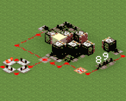 - First, make a structure of command blocks, 3 blocks tall. Break the block in the middle, and place another command block adjacent to the space between the two command blocks. Photo shown at bottom of page.