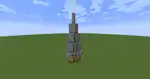 Tip: You can make an odd-diameter spire look pointier by adding fence posts of some kind as additional levels above the topmost block, and by replacing the diameter 3 circle with four blocks arranged in a diamond rather than eight blocks forming a hollow square.