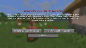 When attempting to downgrade a world in Bedrock Edition, the game will prevent the player from doing so to prevent corruption.