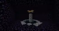 The player should also collect the dragon egg from the top of the portal. Before collecting it, the player should cover the portal with blocks, so when it drops it does not land in the exit portal and get sent to the Overworld world spawn point. After that, do not mine it. If the player does, the egg teleports away. One way to get the egg is to place a piston facing toward it and activate the piston, causing it to drop as an item. If you make the egg fall onto a torch, it is in item form as the egg is affected by gravity, like sand and gravel. It is possible to mine the egg by making a large 30×30×15 cube of blocks with the egg in the center. You need to tunnel to the center and make the passage out of transparent blocks like doors or fence gates as the egg cannot teleport to these blocks. You can break the egg with your fist and it drops. This method is not recommended because it requires many stacks of blocks.