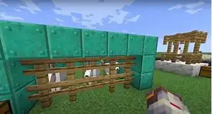 - Building an enclosure for the goats using fences or blocks. Make sure to leave a gate or a door for access. Also add a roof to prevent the goats from jumping out, as they can and will jump up to six blocks.