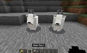 Goat horns are items that can be dropped by goats when they ram their heads into certain blocks. They can be used to play loud sounds that can be heard from far away. There are eight types of goat horns, each with a unique sound. Four of them are exclusive to screaming goats, which are a rare variant of goats. By farming goats, you can obtain all of the eight goat horn types.