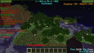 While modifications to Minecraft clients are fairly popular with legitimate mods, griefers also often employ client modifications to aid their efforts. Apart from the mods below, griefing clients often include an in-game GUI to display enabled mods, as well as things such as chat commands (".commands") and keybinds to easily turn hacks on and off.