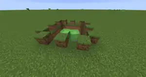 A moat uses the same principle as a slime pit, but it takes advantage of the fact that slimes cannot swim. For simply stopping slimes, a one-block deep moat freezes them in their tracks, but it drowns only the smallest (harmless but annoying) ones. To kill all kinds of slimes, make it three blocks wide and three blocks deep. A water moat has the advantage that it forms a complete barrier against slimes, but is completely harmless to the player and other mobs. Dry moats capture other mobs without killing the slimes. Moats are also easy to build and look nice. In 1.13 it is possible to use magma blocks to pull slimes and all other mobs down using bubble columns. If there are a lot of nearby villages, the player might be able to fill the moat with lava to kill mobs of all kinds although the only downside is that it destroys the items they drop and experience orbs unless they use hoppers.