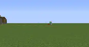 Humans and mobs can also be used for measurement. Pressing F3 + B shows hitboxes. If the green line is as high as a player hitbox, he is about 62 blocks away.