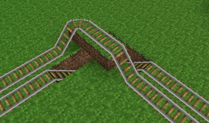 The C-Booster, also known as the collision booster, is a relatively small booster that produces max speed and momentum instantly, allowing fast uphill travel and instant speed. To make one, dig two trenches in the ground, both one block deep, two blocks wide, and 1 block in length. These trenches/lines must be parallel. Place minecart tracks inside them, then link them together in the area in the center by placing a line of track. Cover the trenches with any block, and place two minecarts per line of track. You should now have four closely compacted minecarts. If another minecart directly approaches it and bumps into a minecart inside the C-Booster, it will instantly accelerate in the opposite direction at max speed and max momentum.