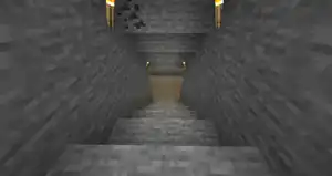 They can also dig a shallower stair, two blocks ahead for each block down. This takes the player even farther away horizontally, but makes it much easier to run minecart trains up the stair.