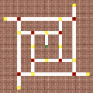 After players get down to the bottom level, they may continue to stretch out and connect with the original push/hubs. Once they connectted, they may use the open style, leaving 1 wide path up or the maze, leaving 2×2 wide up.