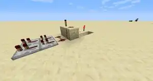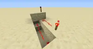 This is the simplest of the three sections; all that needs to be achieved from this is something that can later be decoded into either a dot or a dash. To do this, you will need to make the signal for a dash longer than that of the signal for a dot. This can be achieved by using what has become known as 'monostable circuits'; which are easy to produce due to redstone repeaters. As repeaters can also be set on a delay, you can use this to increase the time take for the message to be sent through the wire. This will be used for the dash and the reset option, which will be created later. The dot doesn't require any delay or extension as it can be detected by the fact that it hasn't been increased.
